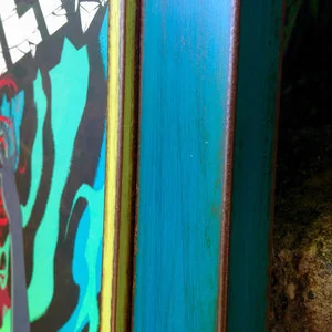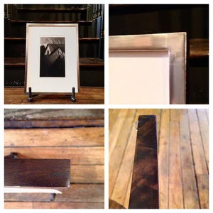 Shag print framed in gloss merlot bamboo frame stacked with orange.