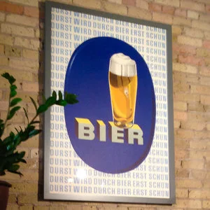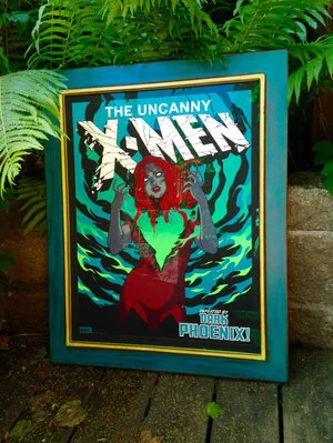 Loring Cafe poster by Steven Rydberg framed in ornate black with oxidized peacock insert.
