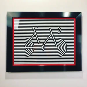 Artcrank print framed in a glossy black frame stacked with red. [Speed by Alan Peters]