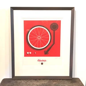 Artcrank print framed in angled cocoa frame. [Electric Lo-Fi Ride by Adam Hoganson]