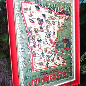 Minnesota Marvels by Faye Passow framed in vintage red.